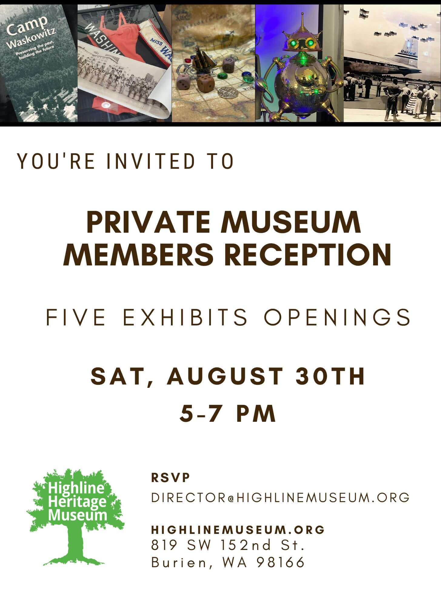 We have five new exhibits at the museum! Come join us for their opening!